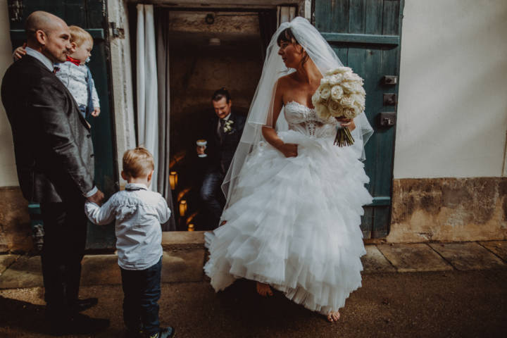Der Regen hielt nicht lange an, und die Feierlichkeiten konnten sich über die gesamte Location erstrecken. Überall gab es liebevolle Details zu entdecken: Die Tischdekoration wurde von Kristina Ehret-Henker von Lebensart Hochzeit mit viel Liebe zum Detail arrangiert. Das elegante Brautkleid und der stilvolle Anzug von Anja und René stammten aus der renommierten Boutique von Uwe Hermann, bekannt aus der TV-Sendung Zwischen Tüll und Tränen.