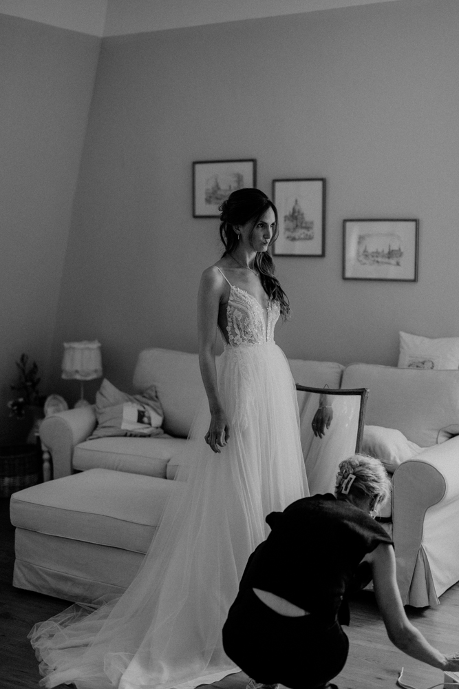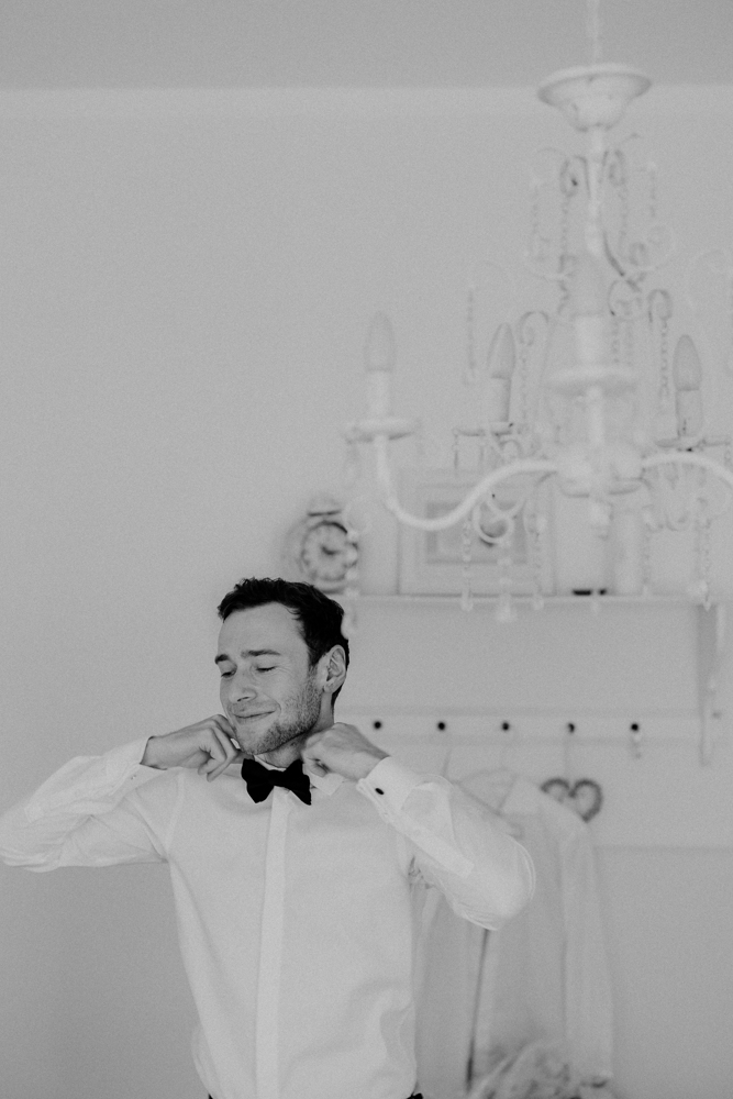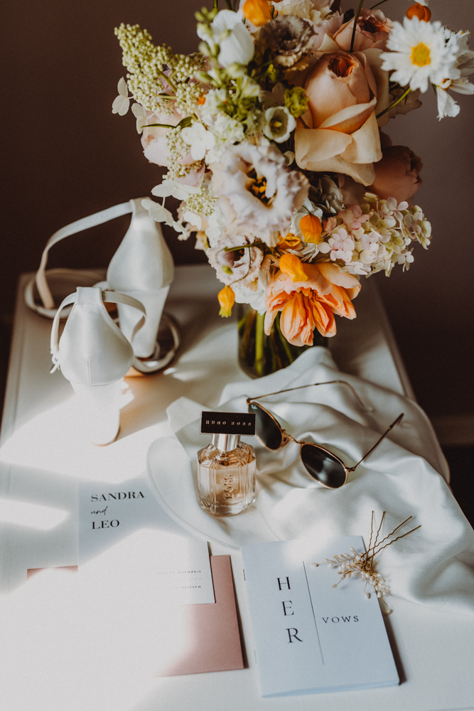 Der Tag begann früh mit dem Getting Ready. Hier sorgte die Dresdner Visagistin Uta Stabler mit ihrer besonnenen und künstlerischen Art für eine unheimlich tolle Atmosphäre beim Zurechtmachen von Braut und Bräutigam. Diese ruhigen und zugleich emotionalen Momente sind für mich ein wichtiger Teil jeder Reportage – sie geben dem Tag einen besonderen Rahmen und lassen die Vorfreude spürbar werden.