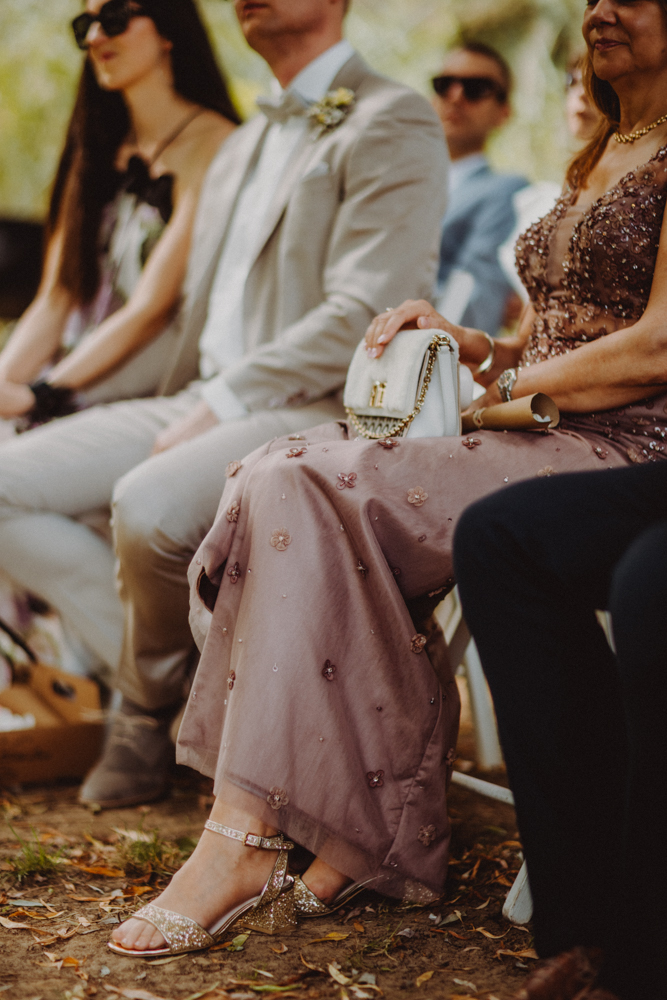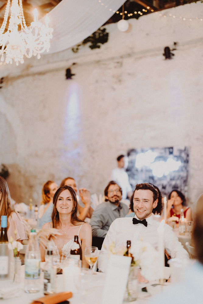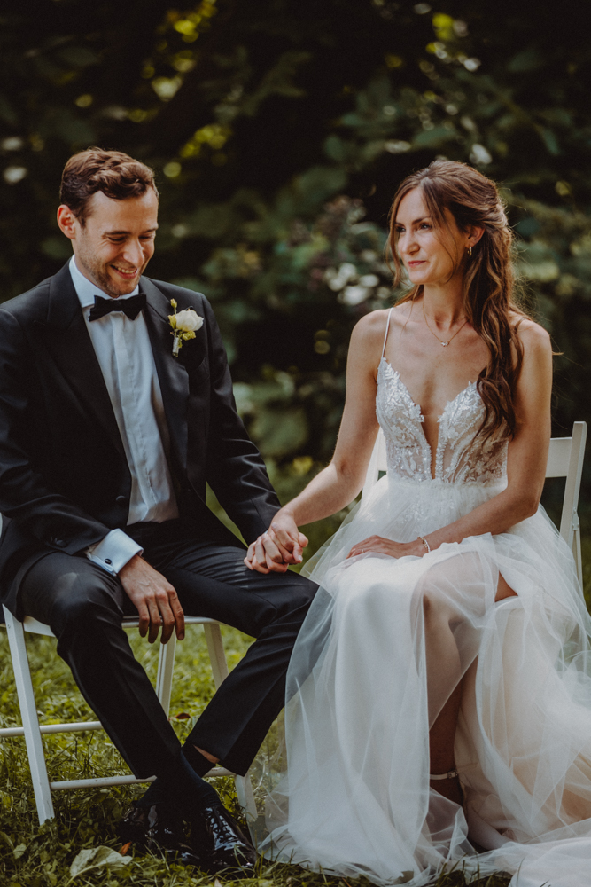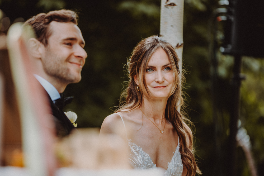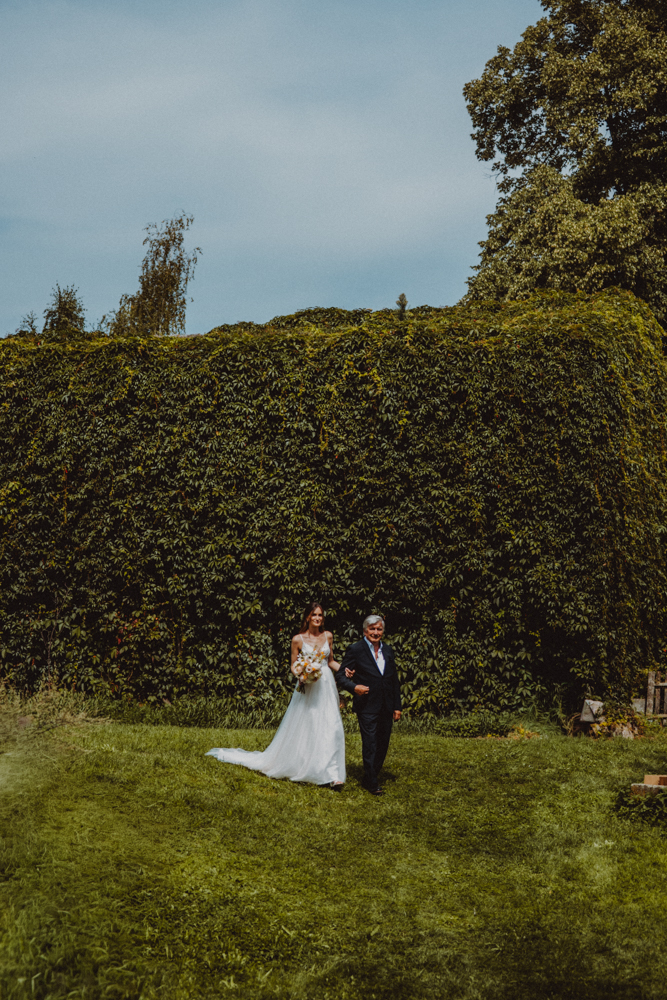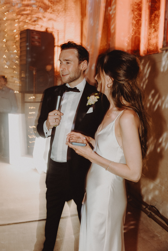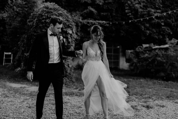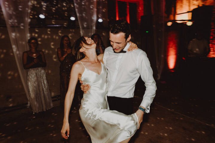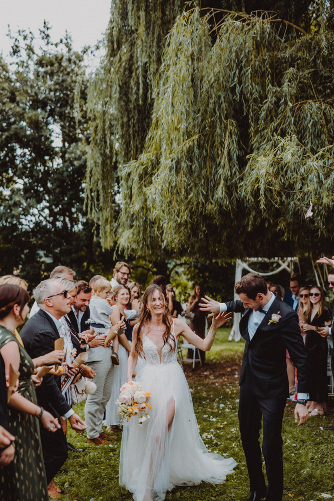 Die freie Trauung fand im weitläufigen Garten der Location statt – emotional und persönlich gestaltet von der Berliner Traurednerin Tina Knop. Für die musikalische Begleitung sorgte das Duo @minoeliaswet (Instagram) aus Frankfurt. Mit einer weichen und gefühlvollen Stimme schufen sie eine ganz besondere Stimmung, die Gäste wie Brautpaar tief berührte und für einen echten Wow-Moment sorgte. Unter einer riesengroßen Magnolie wurde anschließend Kaffee getrunken, bevor es am Abend zum festlichen Dinner in die urbane Scheune des Göhrischguts ging. Die Mischung aus Natur, entspanntem Sommerfeeling und modernem Ambiente machte diesen Tag einzigartig.
